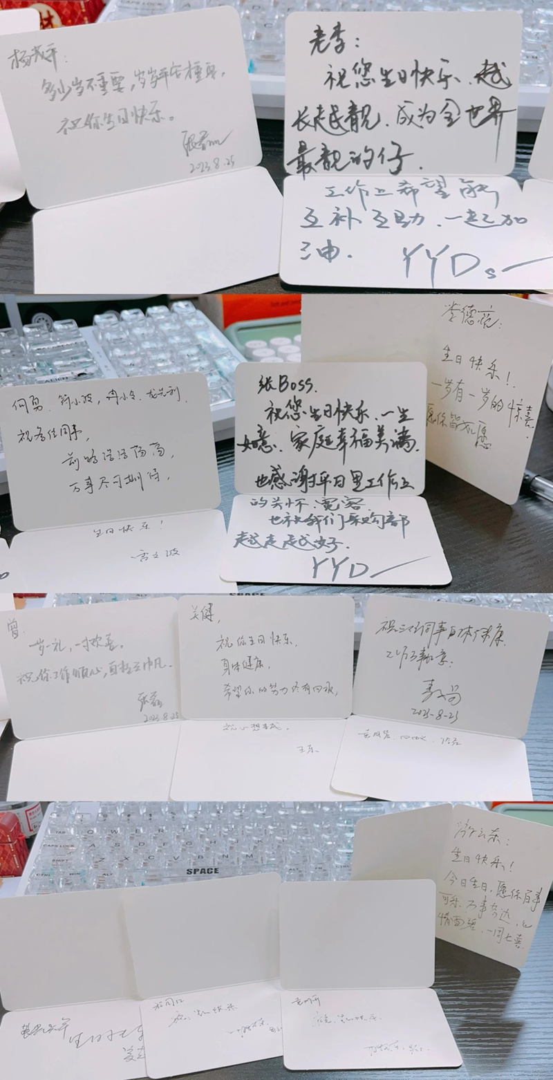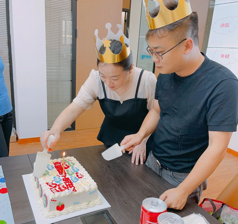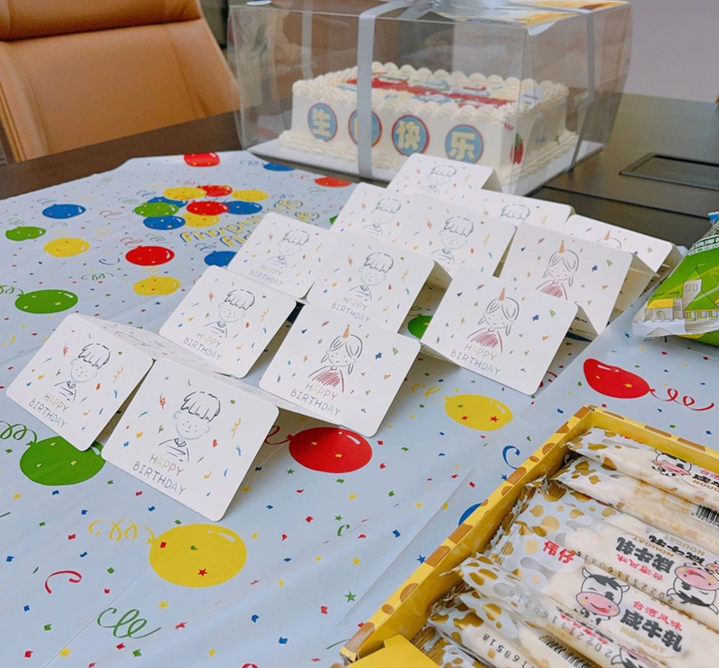 烈日当空,公司为盛夏生日的同事们准备了清爽可口的生日蛋糕,各位同事也为寿星们提前送上生日贺卡,分享彼此的快乐和感悟,增进友谊~